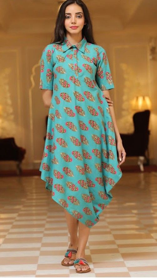 If you love modern silhouettes, go for the high-low kurti — short in the front and long at the back. It’s a great design for stitching kurtis that blend Indian and Western fashion effortlessly.