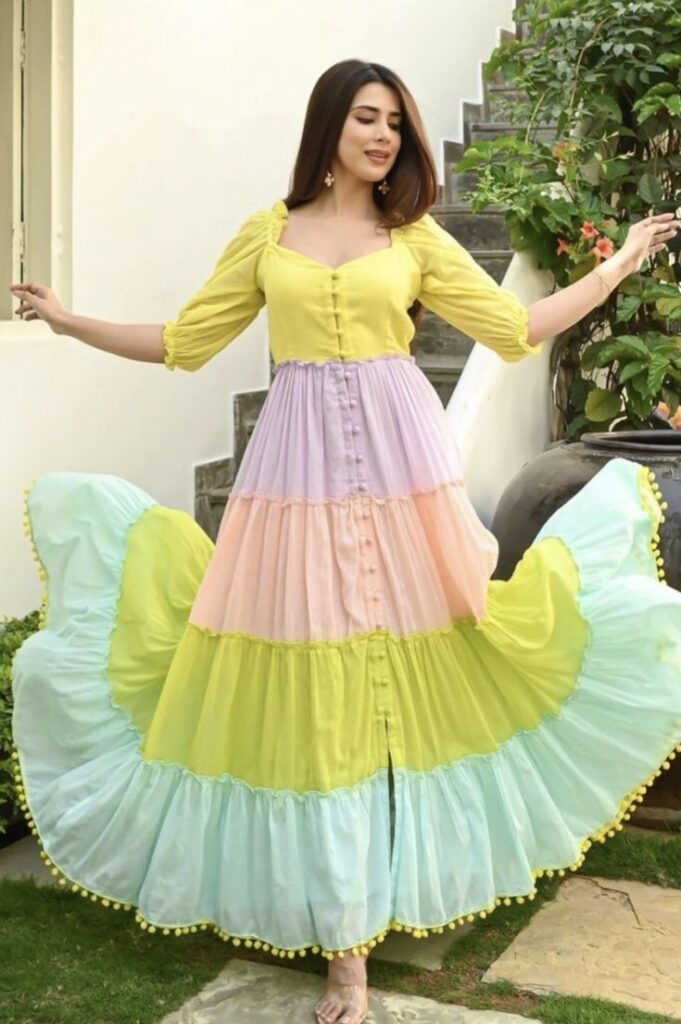 • Fabric: Cotton, rayon, silk, and georgette each fabric gives a different flow and silhouette.